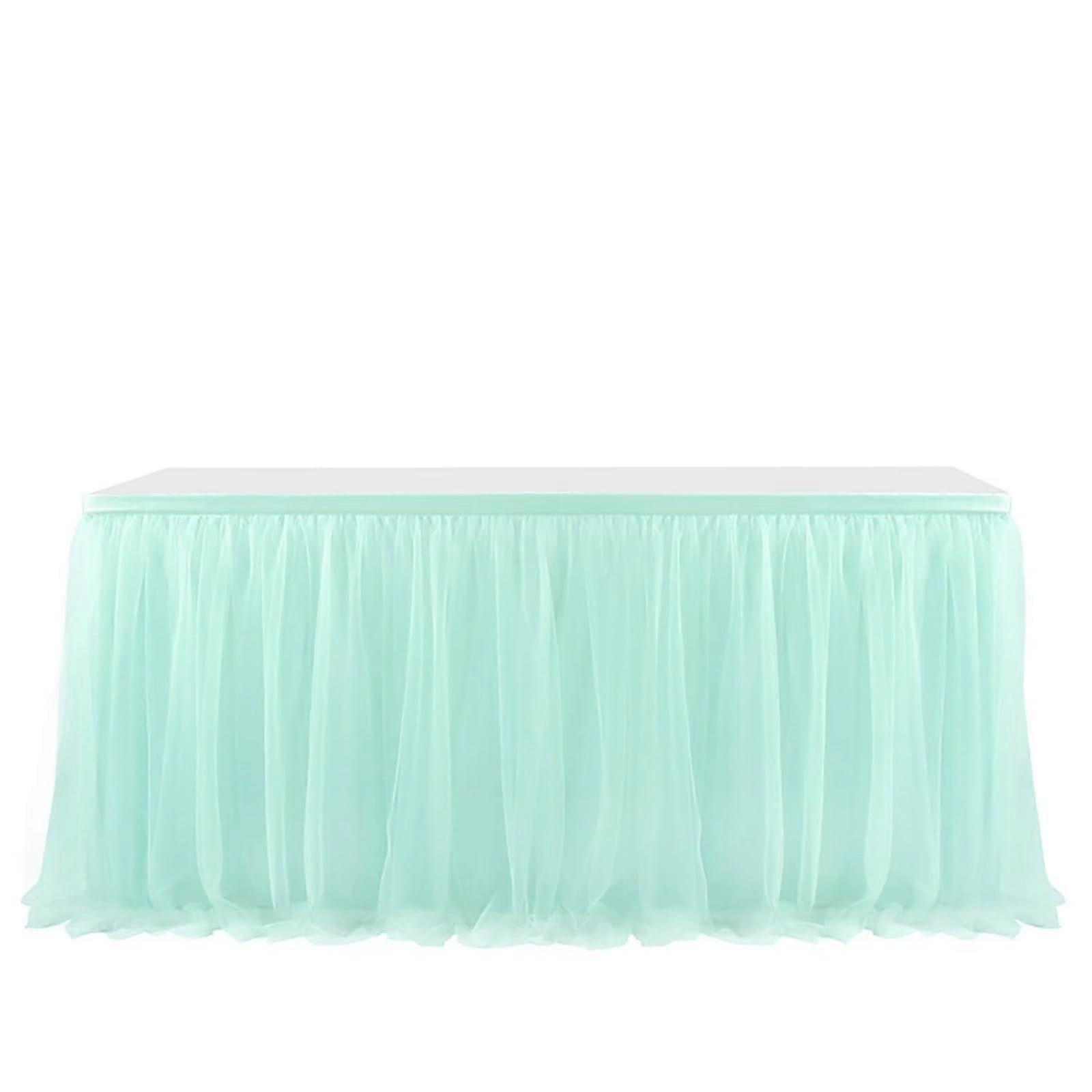 Tulle Table Skirt Golden Edge Nylon Mesh, 6FT/9FT/14FT, Fits Rectangle or Round Tables, Light Green 183x77cm