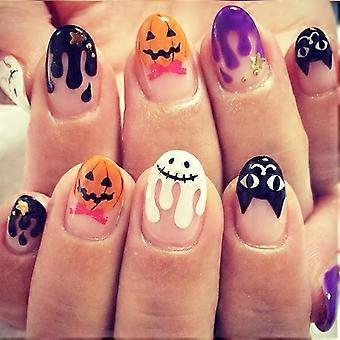 24 Stück Halloween-Kunstnägel in ovaler Form mit Kürbis- und Geistermotiven für Frauen und Mädchen