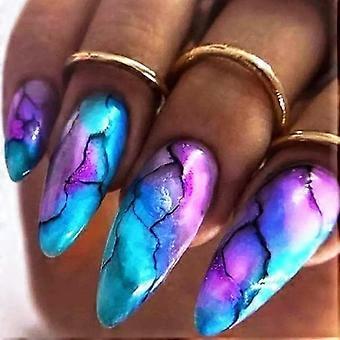 Set mit mittelgroßen, mandelförmigen künstlichen Fingernägeln mit glänzendem, mehrfarbigem Wolkenmuster, wiederverwendbare Acryl-Kunstnägel für Damen