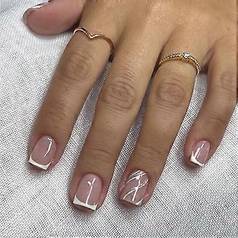 Kurze, quadratische French-Tip-Kunstnägel zum Aufkleben mit Kleber, wiederverwendbare, nudefarbene Acryl-Kunstnägel für die DIY-Maniküre