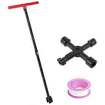 Water Meter Key with 4-Way Utility Key,Water Shut Off Tool for Curb Main,Underground Stop/Waste,-Handle&U-Head
