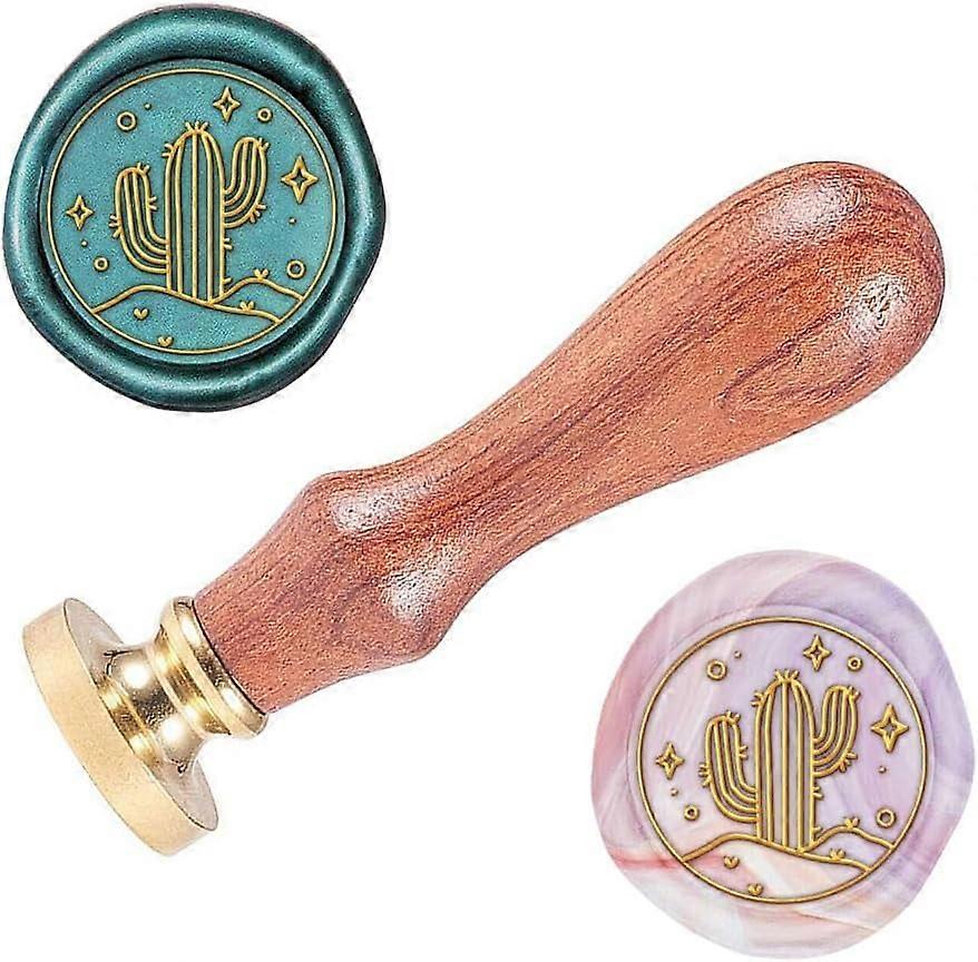 Wax Seal Stamp 0.98" Cactus & Star Pattern, Brass Seal with Wood Handle for Cards, Invitations, Gifts - Compatible with sealing wax
