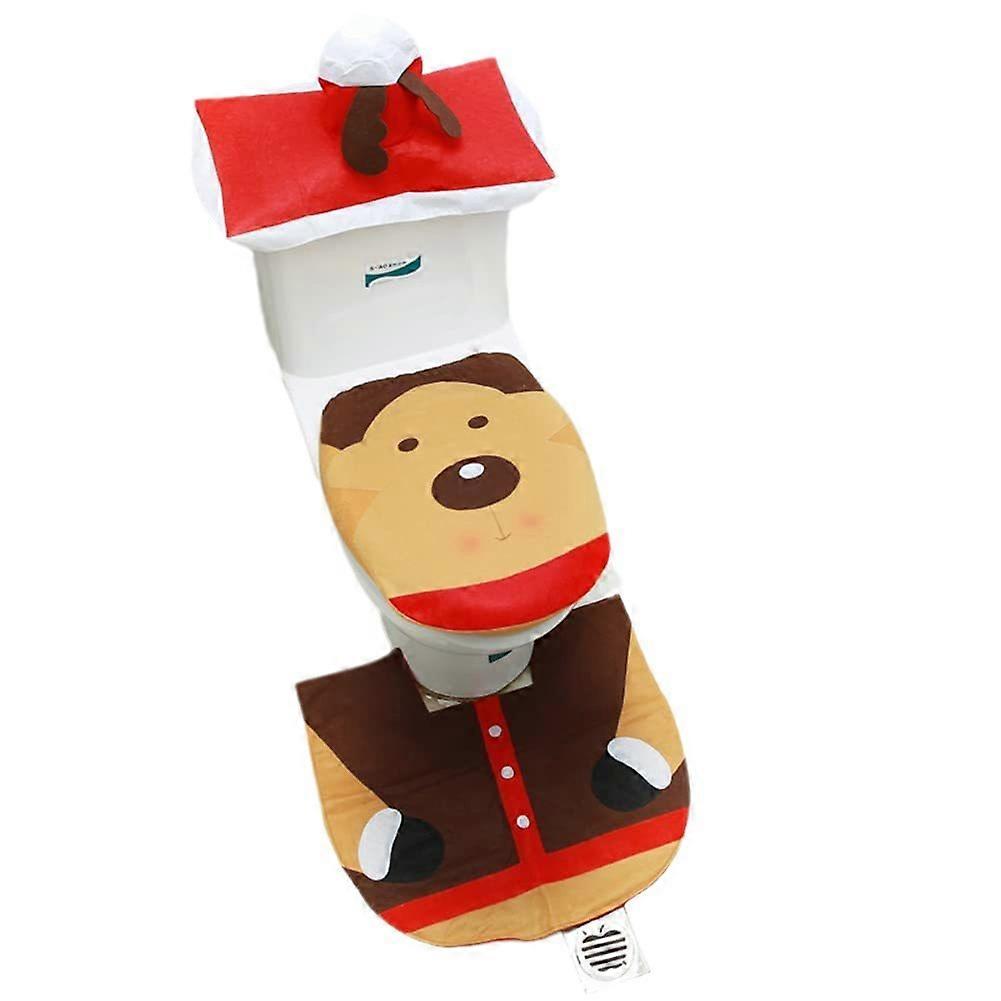 Christmas Toilet Seat Cover Set, Cute Santa Claus Elk Toilet Seat Cover + Toilet Tank Cover Paper Box + Carpet Set for Christmas Bathroom Decoration