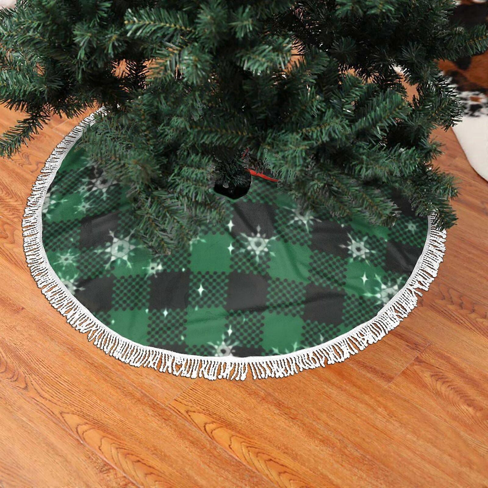 Christmas Fringed Lace Tree Skirt, Christmas Snowflake Buffalo Plaid 3 Soft, Light, Good Touch Tree Skirt 30"