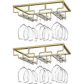 Weinglasregal, [2er-Pack] Weinglas-Kleiderbügel Er Schrank Stielgläser Weinglashalter Aufbewahrungsbügel für Bar Küchenschrank (3 Reihen) - Gold