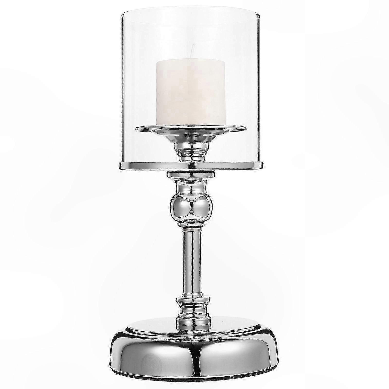 Windproof Tea Light Candle Stand For Party Occasion With Glass Tube In Stylish Silver Color 1Set