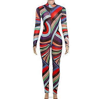 Wintermode Trend Halbhoher Ausschnitt Langarm Geometrisches Muster Farbe Mesh Lockeres Kleid