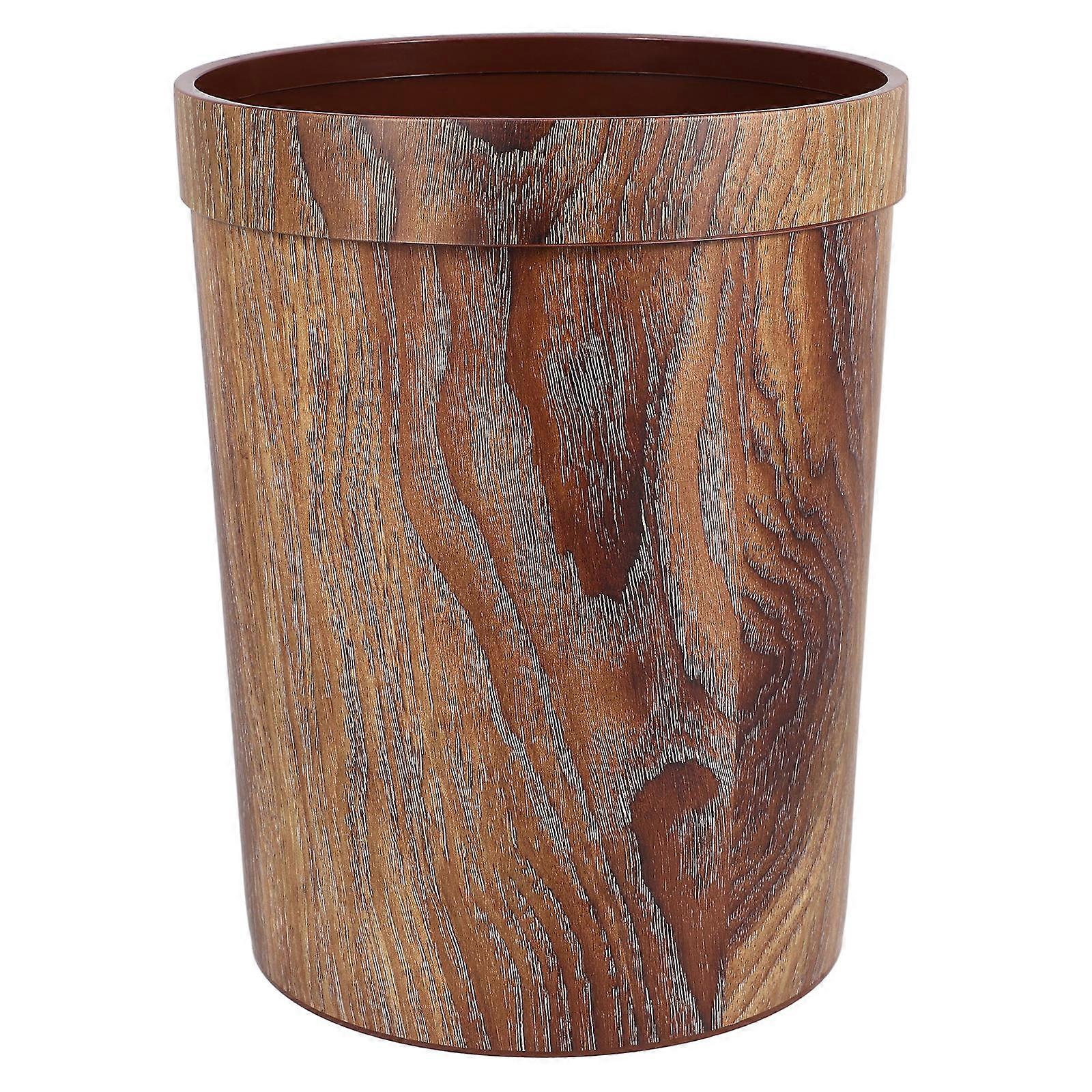 Wood Grain Pattern Plastic Garbage Can For Bedroom Use 28.50X22.00X22.00CM 1Set Convenient Room Trash Disposal